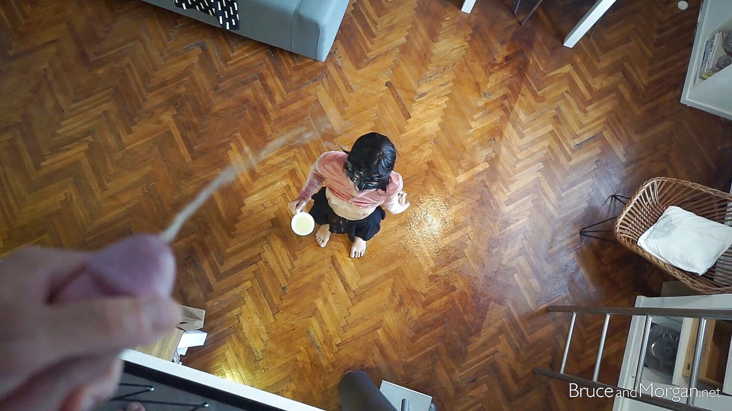 Sundays are for resting, relaxing and taking it easy. Why go all the way to the toilet downstairs when you can empty your bladder from the second floor onto your girlfriend below? And what if you get turned on while you're peeing on her... why not finish it off with a nice wank? The resulting high-altitude sperm shower will brighten her day and get you even more relaxed. You might be tired from all this effort. Time for a nap! The slurping noise your girlfriend makes as she drinks the cum and piss from the floor is a perfect lullaby for sweet dreams. - Bruce