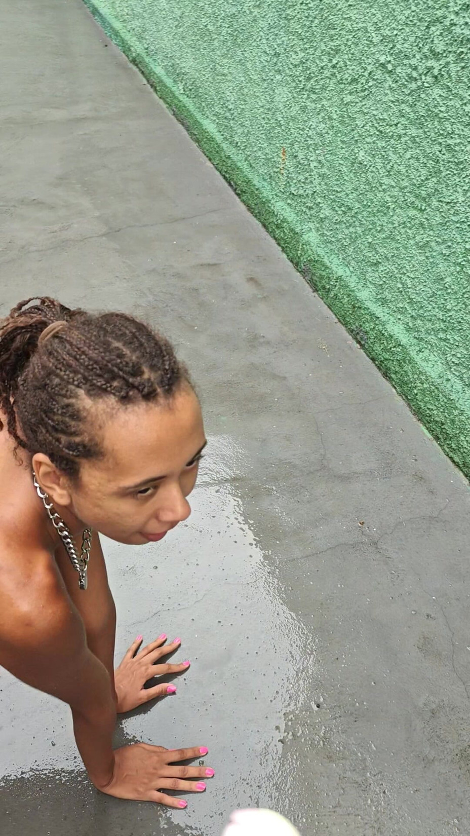 My Owner took me to play in the backyard on a rainy day.He threw me twigs for me to fetch, and gave me tasty treats. But it wasn't all flowers on this outing. My Owner wanted me to be quick in fetching the twigs, so my Owner gave me lots of slaps on my tail to encourage me to go faster. I loved it the walk, the treats and the slaps