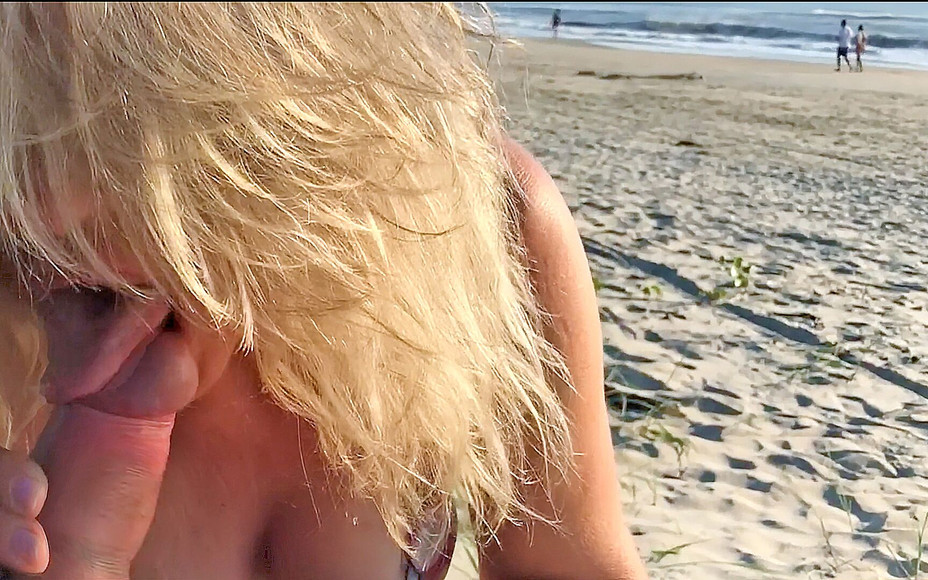 A nymphomaniac milf approached a stranger on the beach and in front of everyone took his fat cock in her mouth and then persuaded him to cum in her anus